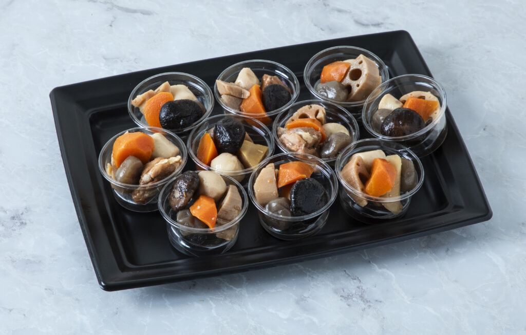 オードブルはすでに盛り付けが完成しているため、温め直しや個別配膳の手間が不要です。テーブルに並べるだけで空間を華やかにし、参加者が自由に取って楽しむことができ、役職や年齢を問わず幅広い層に好まれます。また、会話を中断せず食べられる点も、交流を重視した周年行事には大きな魅力です。人数規模に合わせてプランを調整できるのもメリット。例えば30名規模なら、洋風・和食・中華を織り交ぜたオードブルを用意するだけで、見た目も栄養バランスも整ったおもてなしが実現します。