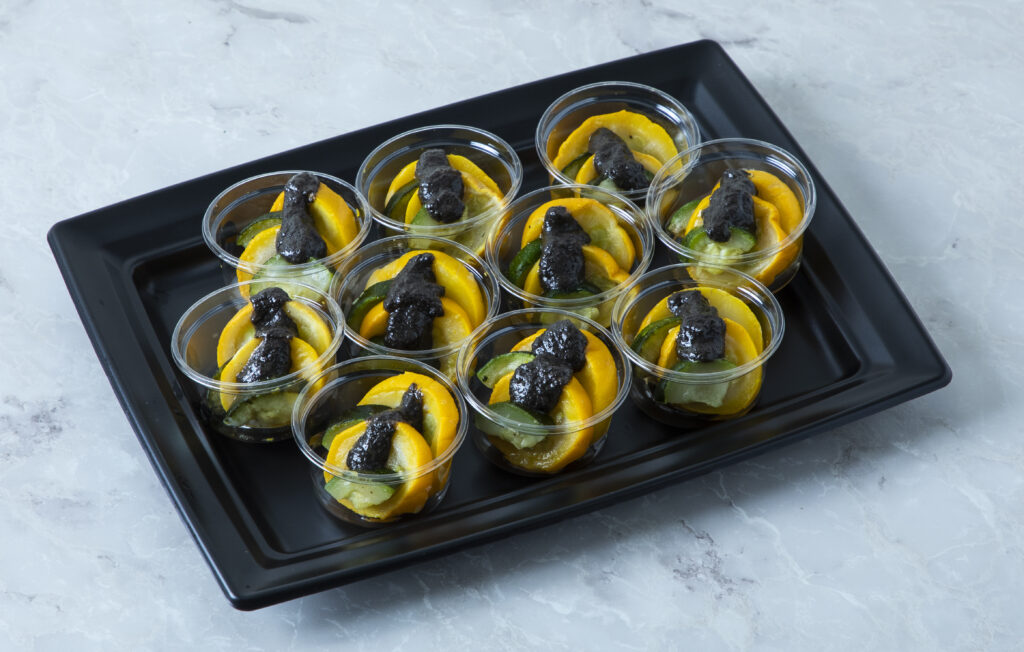10名規模の打ち上げなら、冷製の生ハムやカルパッチョで彩りを添えつつ、温製の唐揚げやピラフなどで食べ応えをプラス。さらにデザートを加えることで、最後まで満足感のある食事に仕上がります。カップスタイルですでにひとつひとつ盛り付けられているため、それぞれのペースで食事を楽しむことができます。